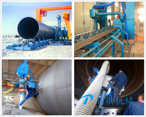 采用液壓馬達驅(qū)動,噴丸清理采用啟動馬達驅(qū)動。 我公司設(shè)計的有大管徑的內(nèi)壁拋丸機和直徑600mm以下的小型鋼管噴丸機等。該設(shè)備采用自動拋丸去除表面銹蝕,利用拋丸器拋出的高速